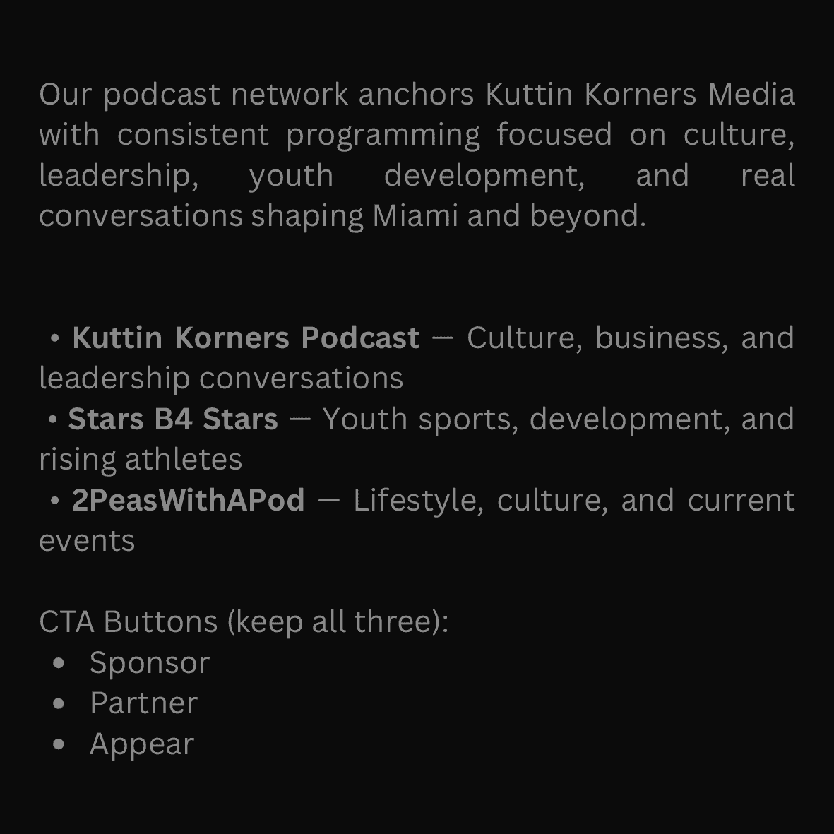 Krush TV 101, the flagship media property of Kuttin Korners Media, delivers podcast interviews, community-driven stories, and digital content spotlighting Miami’s entrepreneurs, entertainers, and athletes.